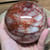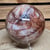 Die hochwertige Politur bringt sowohl die warmen Rot- und Brauntöne als auch die hellen Quarzflächen klar zur Geltung und verstärkt die visuelle Tiefe dieser großformatigen Kugel. Durch ihre massive Größe und das hohe Gewicht wirkt sie besonders präsent und eignet sich hervorragend als hochwertiges Sammler- oder Schaustück.