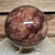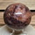 Die hochwertige Politur bringt sowohl die warmen Rot- und Brauntöne als auch die helleren Quarzflächen klar zur Geltung und verstärkt die visuelle Tiefe dieser massiven Kugel. Durch ihre Größe und das hohe Gewicht wirkt sie besonders präsent.