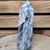 Die Politur ist hochwertig ausgeführt und bringt sowohl die Farbkontraste als auch die natürlichen Übergänge optimal zur Geltung, während die Drusenöffnung bewusst naturbelassen bleibt. Durch seine Größe, das höhere Gewicht und die ausgeprägte Struktur eignet sich dieser Moosachat-Turm hervorragend als markantes Sammler- oder Schaustück.