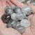 Die Farbwirkung reicht von nahezu transparent über hellgrau bis leicht rauchig, durchzogen von dunklen Turmalinstrukturen. Durch die Trommelpolitur entsteht eine glatte, angenehme Oberfläche, während die natürlichen Einschlüsse klar sichtbar bleiben und dem Stein seinen individuellen Charakter verleihen.