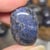 Die unregelmäßigen Farbverläufe entstehen durch massive Sodalith-Aggregate, die während der Bildung mit hellen mineralischen Anteilen durchzogen wurden. Je nach Schliff und Lichteinfall treten diese Strukturen unterschiedlich stark hervor. Die Trommelpolitur verstärkt die natürliche Zeichnung und bringt die Oberflächenstruktur klar zur Geltung.