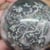 Diese Moosachat-Kugel aus Madagaskar zeigt eine überwiegend grau bis graublau wirkende Chalcedon-Grundmatrix, die von fein verzweigten, moosartigen Einschlüssen durchzogen ist. Die Einschlüsse erscheinen in grünlichen bis dunkelgrünen Farbtönen und bilden unregelmäßige, netzartige Strukturen, die sich organisch über die Kugel verteilen.