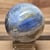 Form ein markantes, lebendiges Streifenmuster zeigen. Die Kugel kombiniert intensive Blautöne mit hellen Quarzbereichen und feineren beige-grauen Zonen, die dem Stück seine