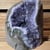 • Material: Natürlicher Amethyst (Varietät des Quarzes), gewachsen auf Basaltgestein, Rückseite stabilisiert und geglättet
