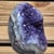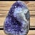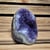 Dieses kompakte Amethyststück aus Brasilien zeigt eine kräftige, violette Kristallhöhlung mit deutlichem Funkeln durch zahlreiche gut ausgebildete Spitzen. Die polierte Außenfläche bildet einen klaren Kontrast zur kristallinen Innenstruktur. In der Druse sind mehrere kleine, schwarz glitzernde punktförmige Einschlüsse erkennbar, wie sie bei brasilianischem Amethyst natürlich auftreten und dem Stück zusätzliche Tiefe und Mikrostruktur verleihen. Das Zusammenspiel aus sattem Violett, helleren Quarzbereichen und der harmonisch gerundeten Form erzeugt eine besondere optische Wirkung.