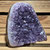 Besonderheiten: natürliche Amethystdruse, deutliche Kristallstruktur, helle Außenbänderung, komplett stabilisierte Rückseite (zementbasiert, herkunftstypisch)